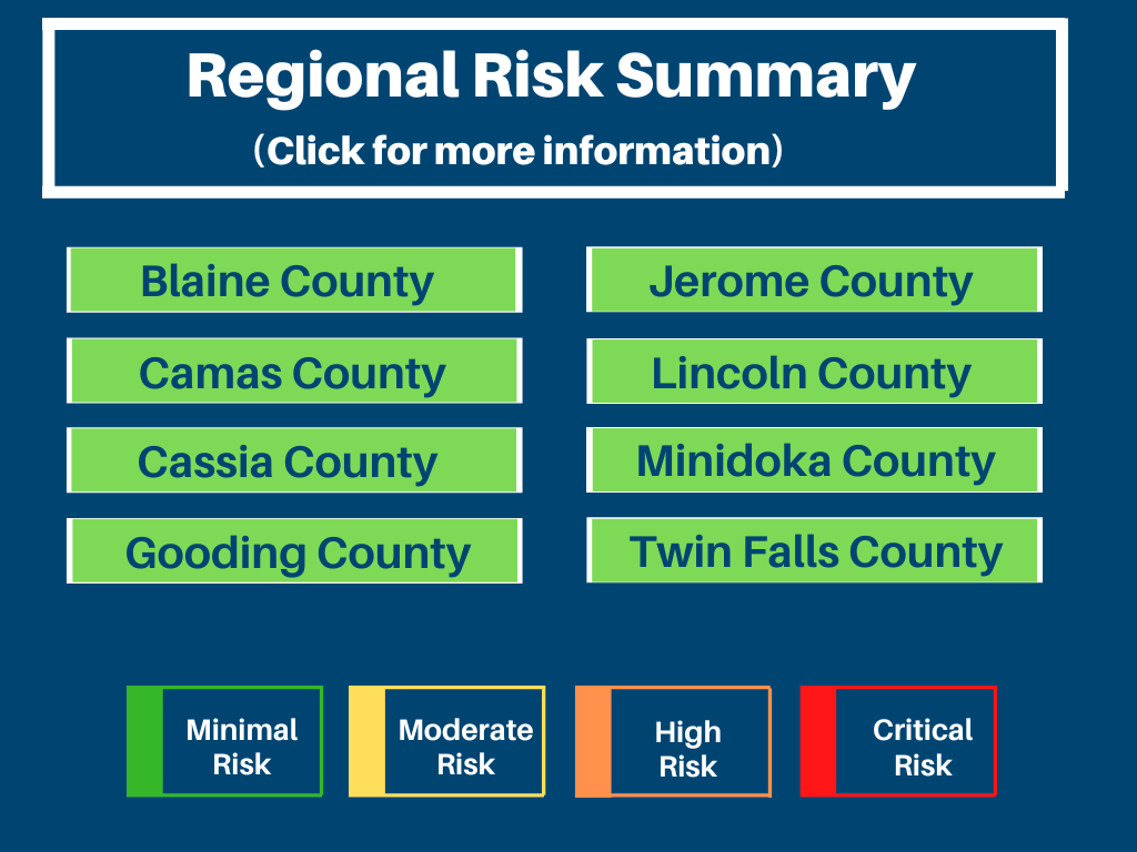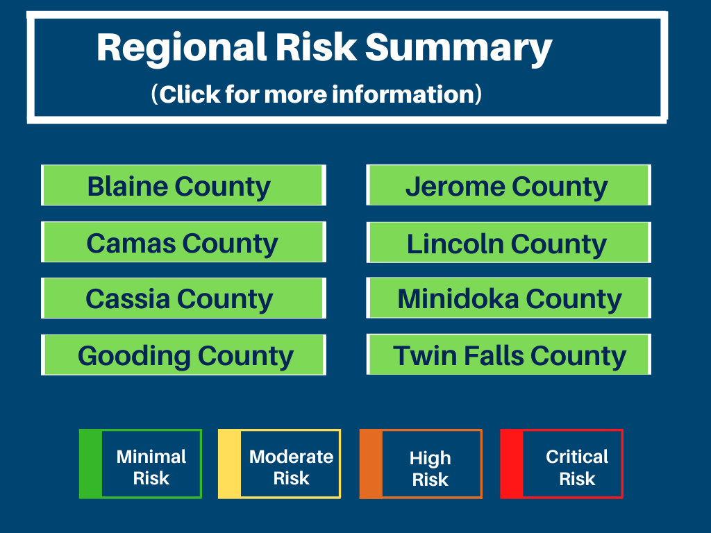 SCPHD is no longer issuing risk assessments. The documents below are historical copies of assessments issued for the region. If you have any questions please contact the COVID-19 hotline: 208-737-1138.